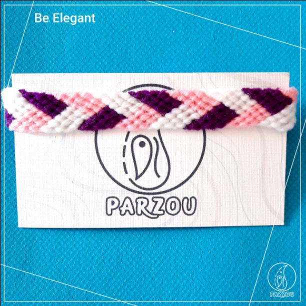 دستبند دوستی سه رنگ صورتی، بنفش و سفید