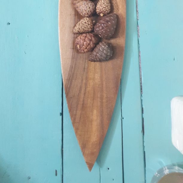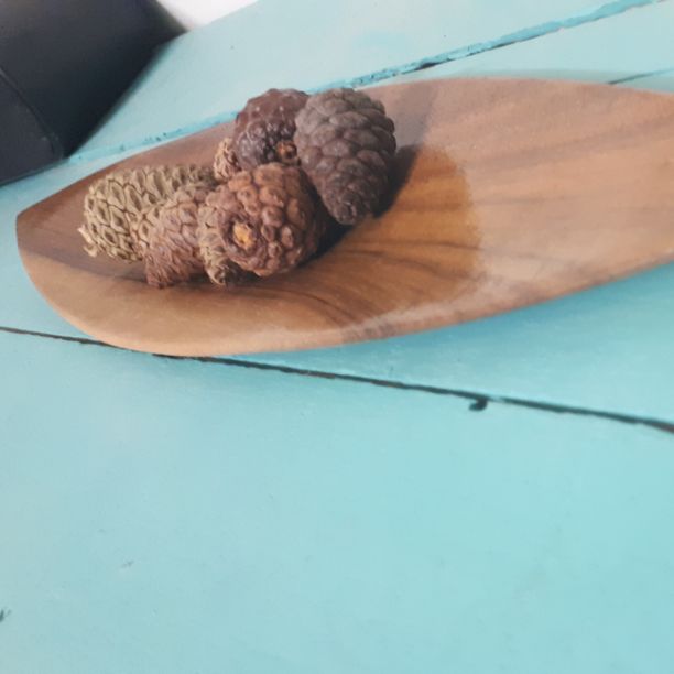 سینی دکوری از جنس گردو این سینی بدونِ میوه کاج ارائه میشود ( امکان سفارش این کالا با شکل و در اندازه دلخواه موجود است )