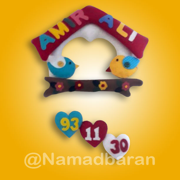 استفاده شده ازبهترین نمد باکیفیت.بااسم وتاریخ تولد دلخواه شما.برای دیدن سایر کارها وسفارش کانال تلگرام ما namadbaran93@ باخرید هر یک محصول یه هدیه بهتون تعلق میگیره