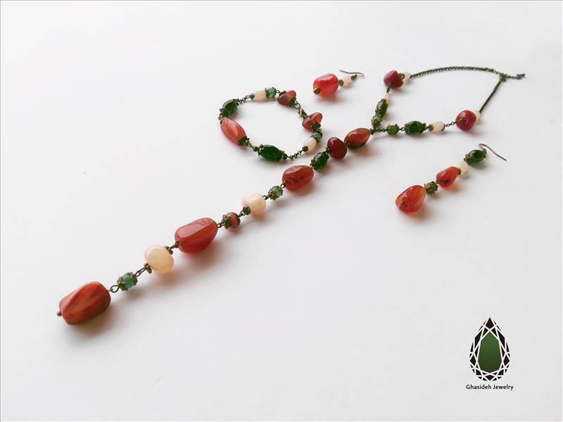 ست زیورآلات عقیق شامل دستبند ، گردنبند و گوشواره