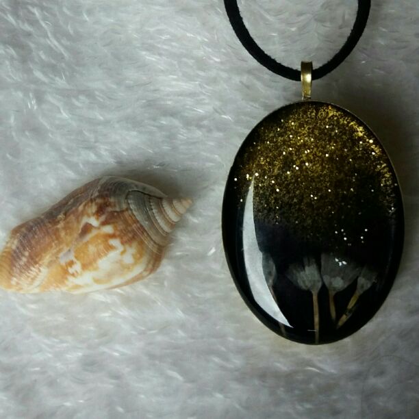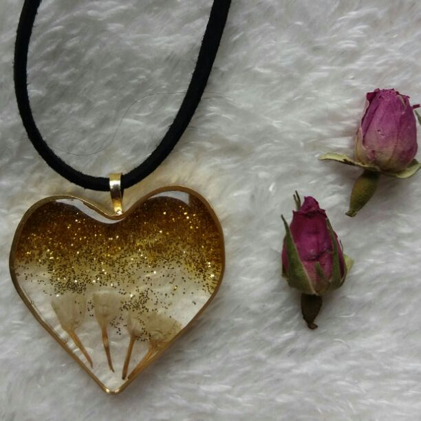گردنیند رزینی با گل خشک و بند چرمی یک متری مناسب رو مانتویی و هدیه به عزیزانتان