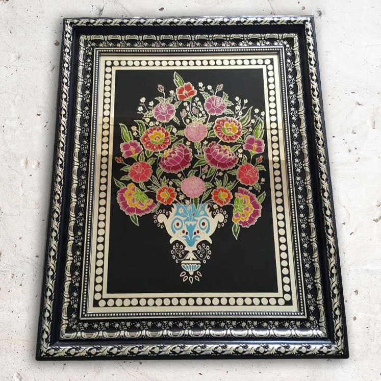 تابلو نقاشی ویترا گل با قاب مقوایی طرح چوب