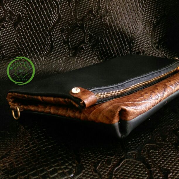 ترکیب چرم گاوی طبیعی ساده و چرم بزی طرح دار دوخته شده با نخ ابریشم ترک استر داخلی سوئیت
