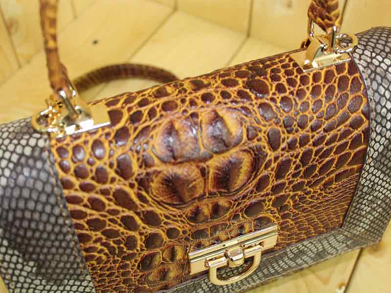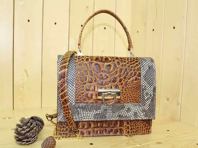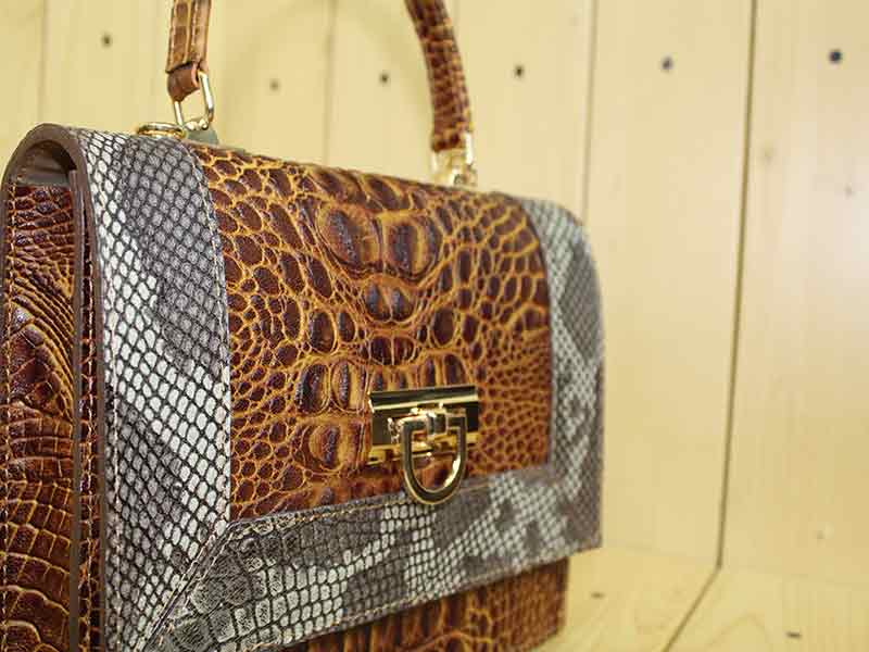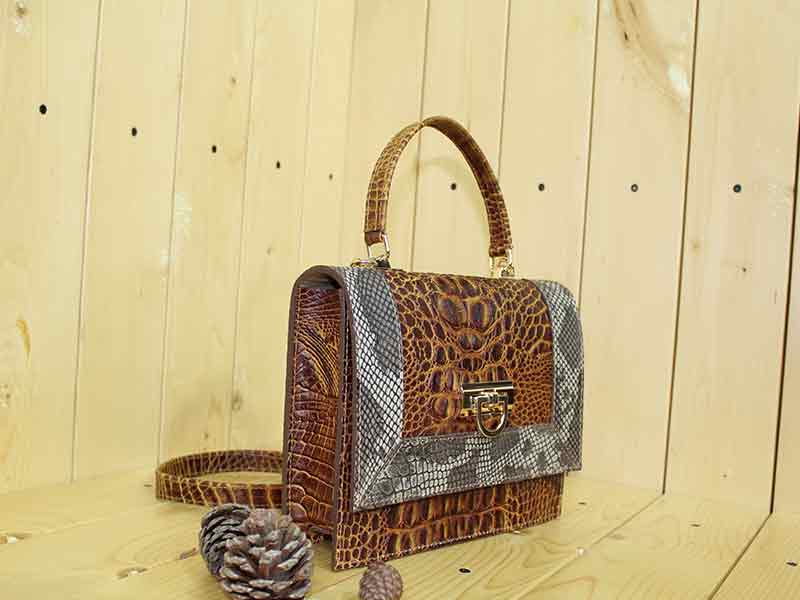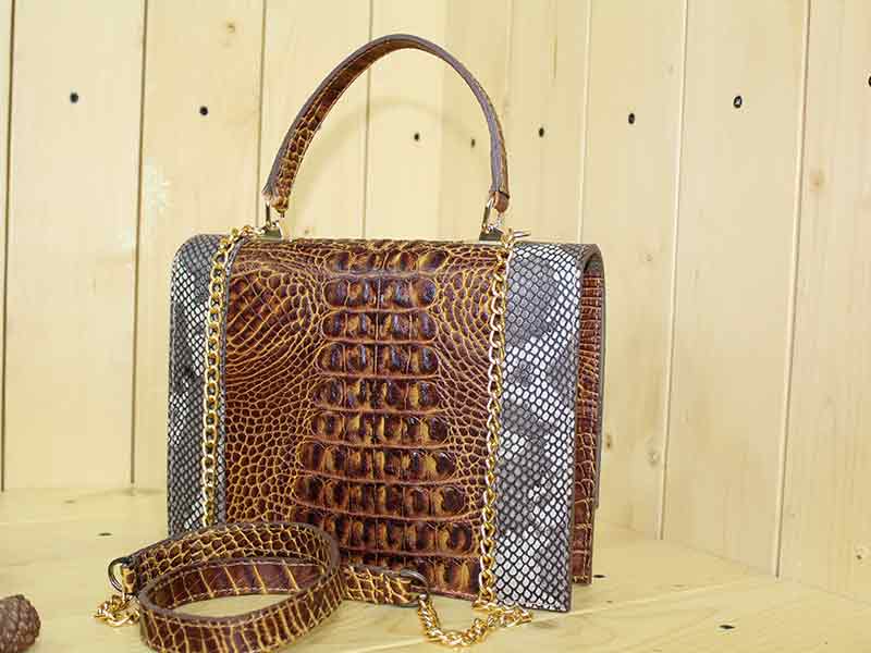 کیف دوشی زنانه شیبا یک طراحی جدید و کاملا توسط چرم لوک میباشد،چرم بکار رفته داخل کیف از چرم طبیعی شتر ی طرح کروکودیل میباشد،دارای یک محفظه داخلی بزرگ برای قرار دادن لوازم شخصی و گوشی موبایل،داخل کیف یک جیب تعبیه شده است برای قراردادن دفترچه یا ...،روی جیب داخل کیف یک محفظه حمل کارت اعتباری نیز میباشد،درب محفظه اصلی کیف تزیین شده با چرم طبیعی ماری،درب بیرونی دارای قفل فروگاما لایت ضد زنگ میباشد،کیف دارای بند چرمی و زنجیر میباشد جهت استفاده دوشی روی شانه بند چرمی میباشد،دارای دسته چرمی جهت استفاده به صورت قراردادن کیف داخل دست،کیف دوشی زنانه شیبا اندازه سایز کیف ۲۵-۲۰-۶ سانتیمتر