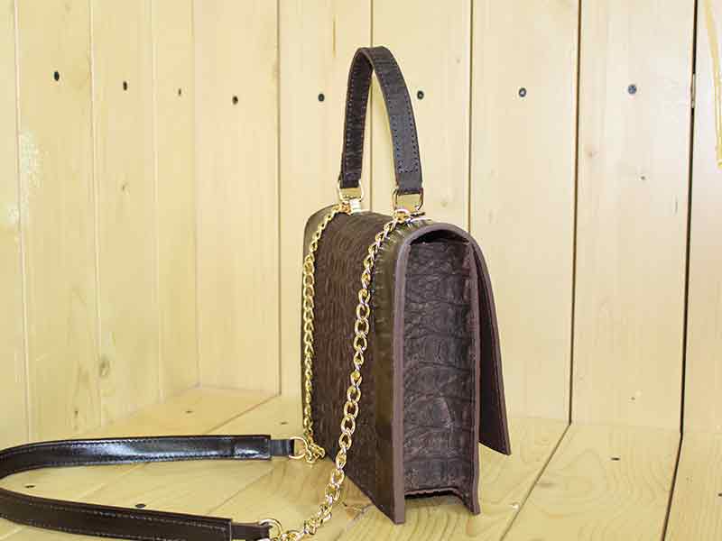ای دستی و دوشی زنانه، پرکاربردترین اکسسوری زنانه به شمار می رود که هر روز مدل های متنوع آن به بازار می آید. اینکه هر مدل را به خوبی بشناسیم و بهترین را برای استایل خودمان انتخاب کنیم، به داشتن یک سبک شخصی زیباتر کمک می کند.،کیف دوشی زنانه شیبا یک طراحی جدید و کاملا توسط چرم لوک میباشد،چرم بکار رفته داخل کیف از چرم طبیعی شتر ی طرح کروکودیل میباشد،دارای یک محفظه داخلی بزرگ برای قرار دادن لوازم شخصی و گوشی موبایل؛داخل کیف یک جیب زیپ دار تعبیه شده است برای قراردادن دفترچه یا...،دارای یک جیب بدون زیپ نیز میباشد که جمعا تعداد دو جیب بزرگ و یک جا کارتی بزرگ میباشد،روی جیب داخل کیف یک محفظه حمل کارت اعتباری نیز میباشد،کیف دوشی شیبا قهوه ایی درب محفظه اصلی کیف تزیین شده با چرم طبیعی گاوی،درب بیرونی دارای قفل فروگاما لایت ضد زنگ میباشد،کیف دارای بند چرمی و زنجیر میباشد جهت استفاده دوشی روی شانه بند چرمی میباشد،دارای دسته چرمی جهت استفاده به صورت قراردادن کیف داخل دست،کیف دوشی زنانه شیبا اندازه سایز کیف ۲۵-۲۰-۶ سانتیمتر