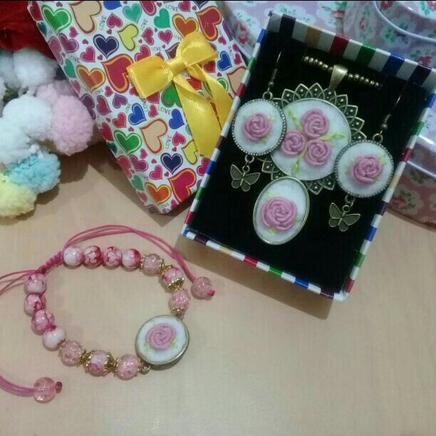 سرویس زیورآلات گلدوزی شده برنزی شامل گردنبند با زنجیره کار شده مهره و گوشواره و دستبند و انگشتری بسیار شیک و بروز دارای جعبه و بسته بندی مناسب برای تمامی مناسبتها جهت کادویی باب تولد و سالگرد ازدواج و ولنتاین و عیدی و روز زن و روز دختر و ۰۰۰