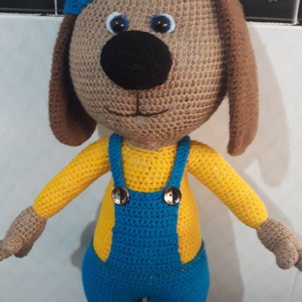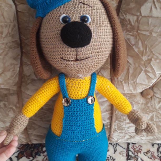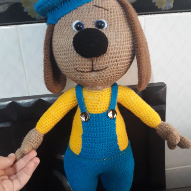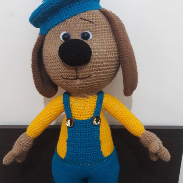 عروسک بافتنی سگ نقاش،کاملا دست بافت بوده وعروسکی بادوام برای بچه هااست،قابل شست وشو،بی خطر برای بچه ها و مناسب برای سیسمونی بچه ها و تزیین اتاق کودک،داخل عروسک بطورکامل با الیاف پرشده ومحکم است و همچنین برای محکمی بیشتر سیم مفتول گذاشته شده است