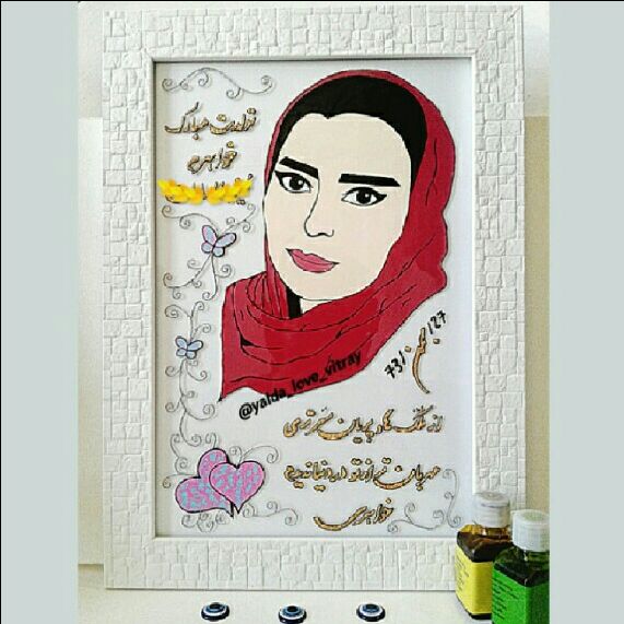 هدیه و سورپرایز زیبا با چهره زیبای عزیزانتان برای تولد و مناسبتهای خاص انواع سفارشات مناسبتی وغیر مناسبتی شما عزیزان روی شیشه ؛ آینه ، دیوارکوب... پذیرفته میشود. اینستا : yalda_love_vitray@