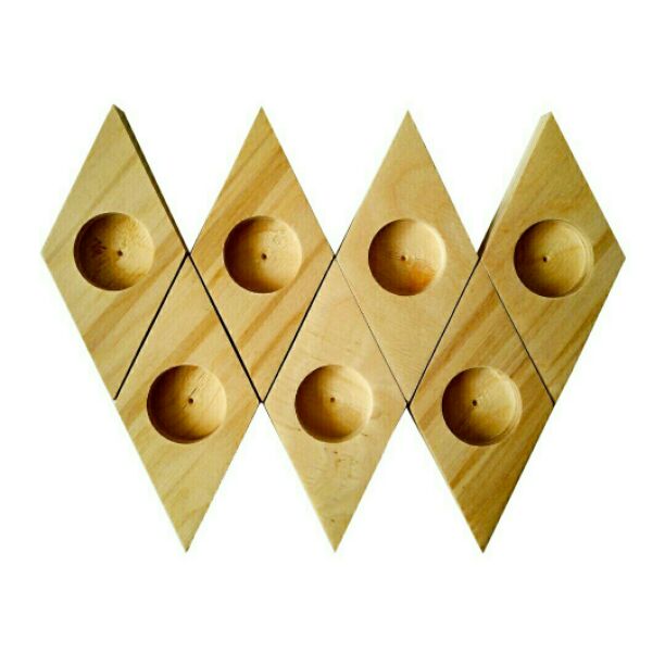 جا شمعی طرح دیاموند از یک مجموعه ۷ عددی تشکیل شده است و در سه رنگ قهوه ای تیره ، قهوهای روشن و خودرنگ چوب عرضه میشود،شما میتوانید این محصول را به صورت جدا و مجموعه استفاده کنید و در پوزیشن های مختلف چیدمان کنید