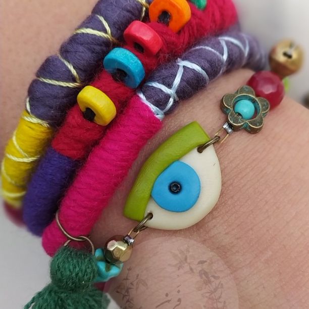 دستبند بافت و سنگی چشم فیمو