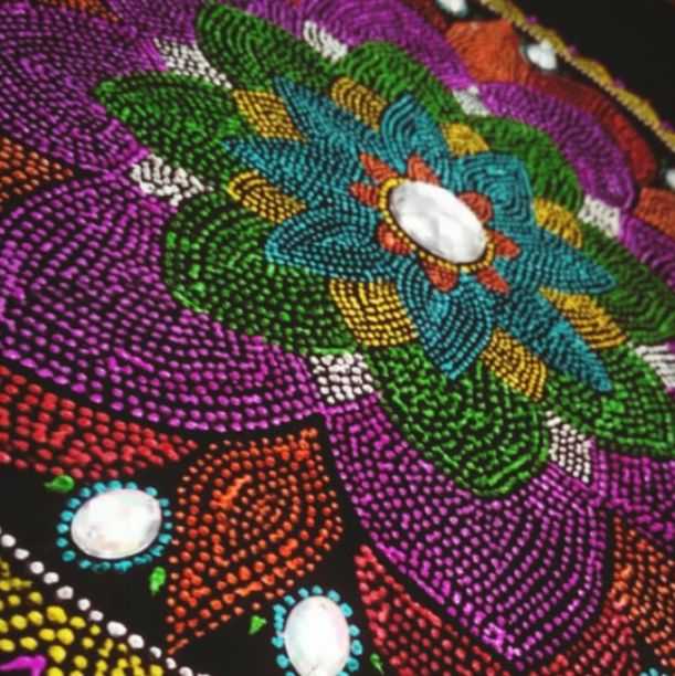 تابلو نقطه کوبی کار شده روی جیر و فیبر