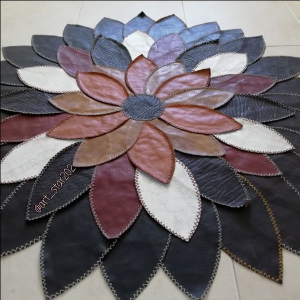 فرش چرمی طرح خورشیدی چرم طبیعی دست دوز مناسب برای دکوراسیون منزل زیبا و جذاب سفارشات در رنگ های متنوع و کیفیت عالی پذیرفته میشود