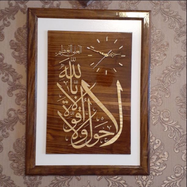 تابلو ساعت .ساعت .معرق .هدیه خاص .هدیه ناب.هدیه مذهبی.قاب چوبی.ذکر .ساقه گندم.
