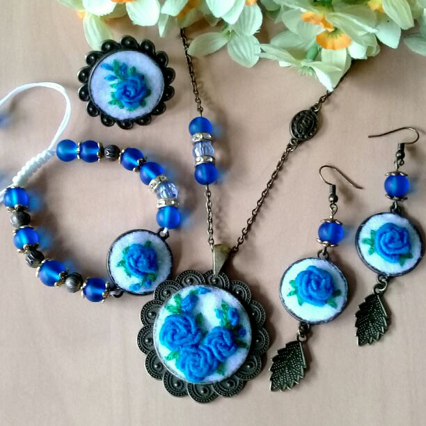 سرویس کامل گلدوزی شده برنزی فیروزه