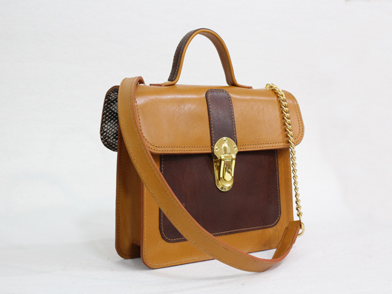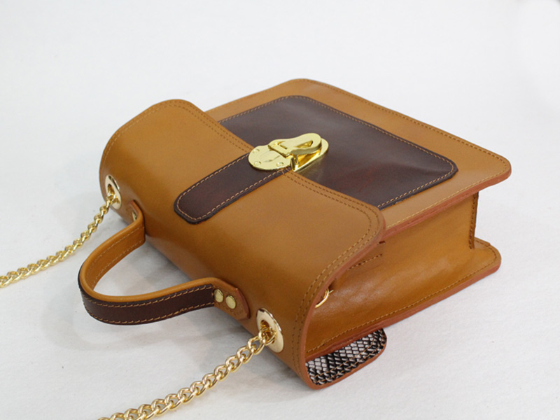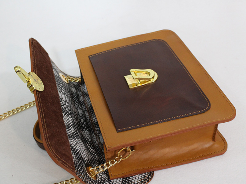 جنس : چرم طبیعی 100% گاوی\nطرح : ساده ترکیبی (رنگ خردلی و قهوه ایی )\nدارای یک جیب جلو مناسب قراردادن لوازم همراه (جدید)\nجنس آستر : پارچهای ضد آب\nمدل و تعداد جیب : دارای یک جیب داخلی\nجیب جا کارتی : داخل کیف دارد\nجیب جا کارتی بزرگتر : داخل کیف دارد\nمدل و تعداد بند : دارای دو بند دستی و یک بند دوشی از جنس چرم طبیعی و زنجیر رنگ ثابت\nنحوه بستهشدن : بهوسیله قفل فشاری\nکاربرد : روزمره و مجلسی\nجزئیات مدل : وزن سبک و جادار، دارای دو محفظه داخلی مجزا به همراه یک جای کارت، رویه از جنس چرم طبیعی صادراتی نرم و لطیف\nکیف چرم مدل ثمین خردلی طراحی جدید گروه تولیدی چرم لوک برگرفته از کلبه و شیروانی\nدارای دسته چرمی برای حمل دستی کیف\nیراق آلات بکار رفته داخل کیف از جنس تمام فلزی و رنگ طلایی ثابت میباشد\nابعاد کیف : 25-22-8 سانتیمتر