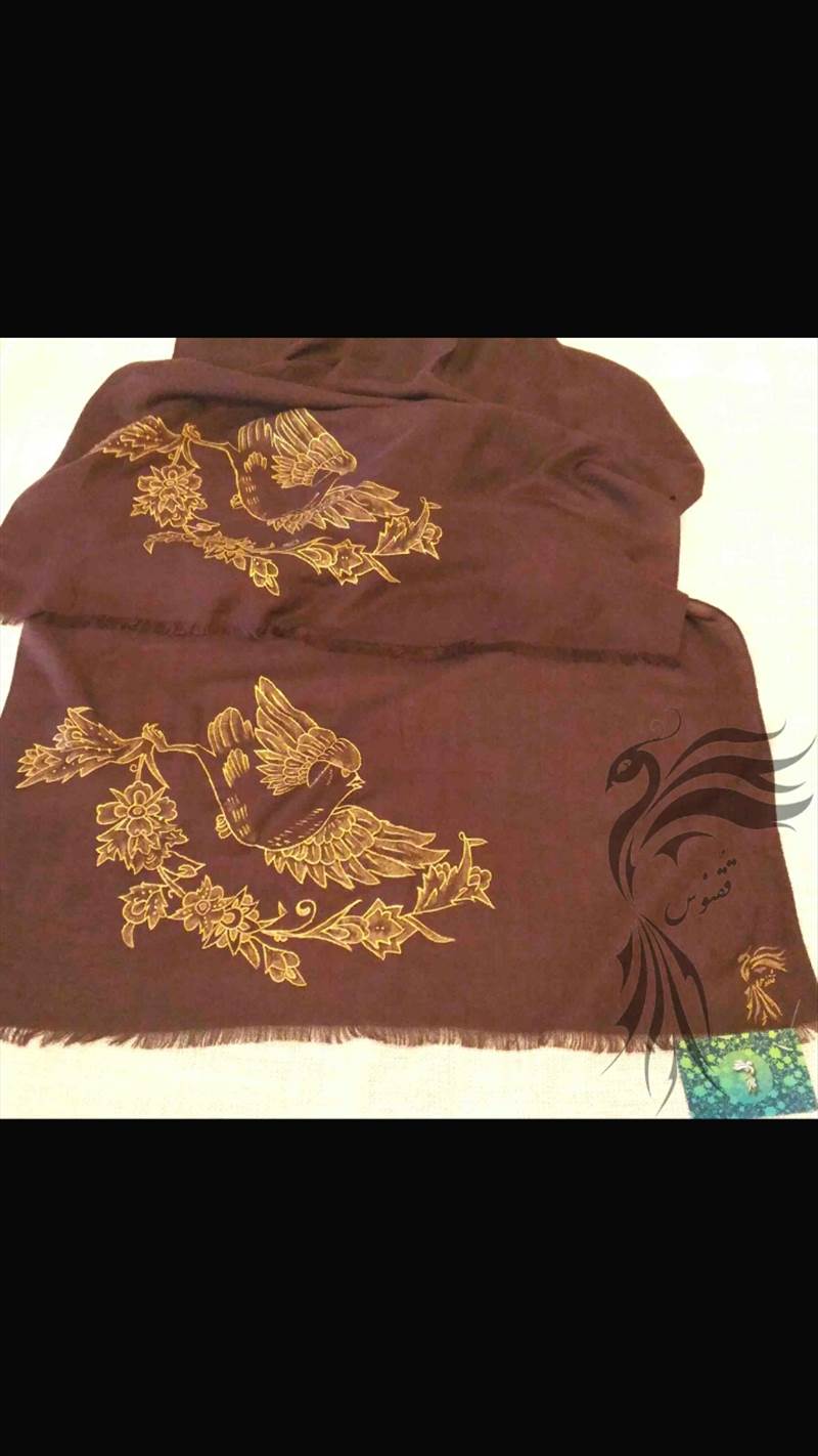 نقاشی روی شال - باتیک - سنتی - ایرانی - گل شاه عباسی - کارگاه هنری ققنوس - شال سنتی - شال - صنایع دستی - کار دست - دست ساز - نقاشی سنتی -