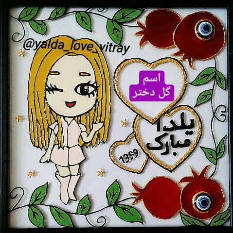 #یلدا#زیبا#سفارش#خرید#ویترا#تابلو#هدیه#یادگاری#پیش_دبستانی#ابتدایی#دختر#دخترانه#ویترا#وبترای#شیشه