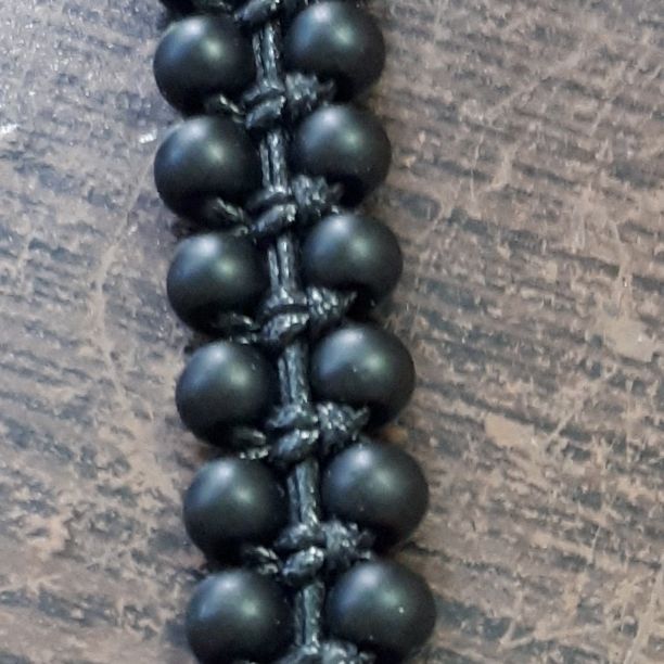 دستبند نخ چرم مصنوعی و مهره مشکی مات