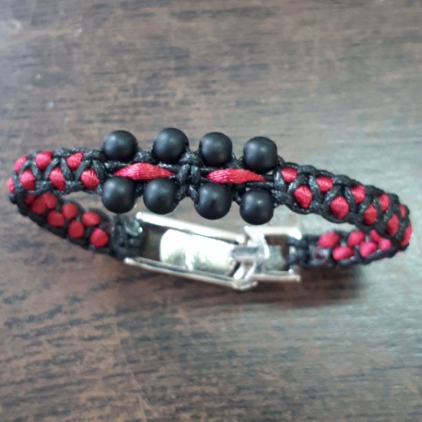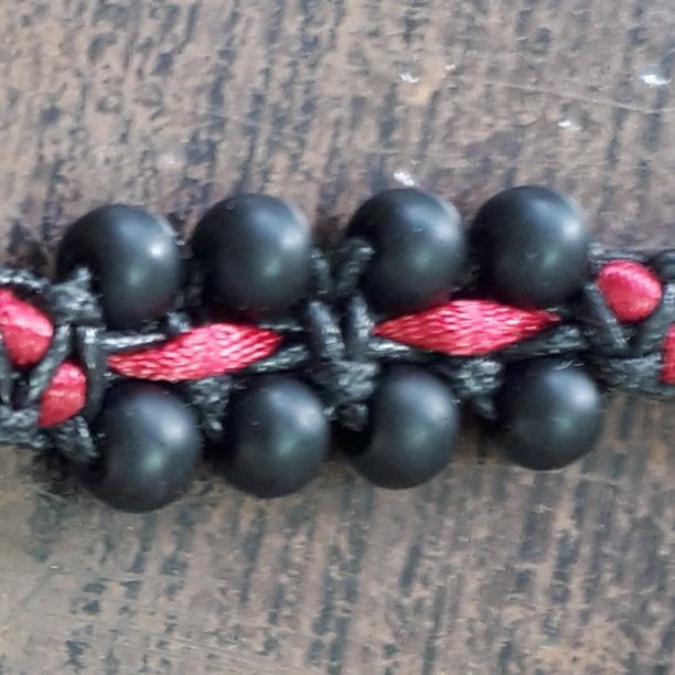 دستبند نخ چرم مصنوعی و مهره مشکی مات