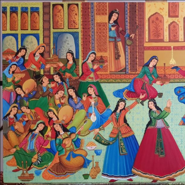 تابلوی کار شده با رنگ اکرولیک