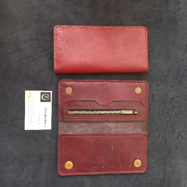 کیف پول کتی مدل بردیا تهیه شده از چرم طبیعی گاوی کاملاً دست دوز