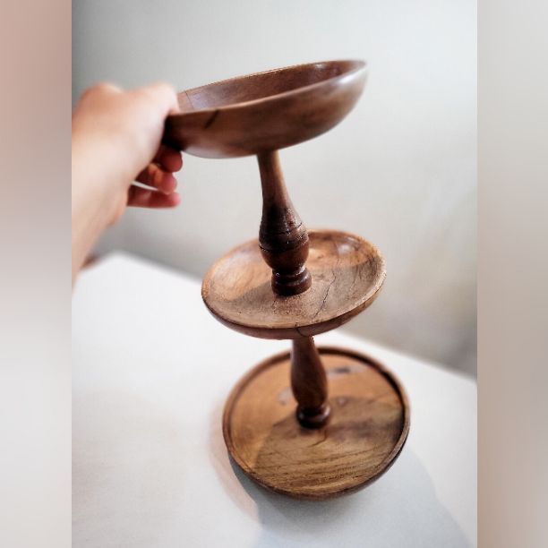 میوه خوری چوبی، شیرینی خوری چوبی، آجیل خوری چوبی، ظرف سه طبقه چوبی، ظروف چوبی قابل شستشو