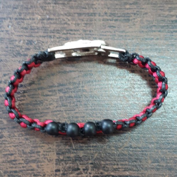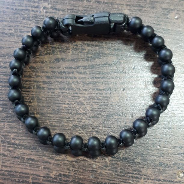 دستبند نخ چرم مصنوعی و مهره مشکی مات