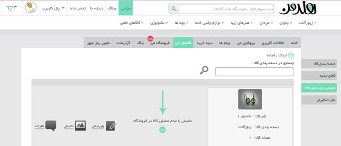 اگر تمایل ندارید محصول شما برای مدتی یا همیشه برای عموم در سایت به نمایش در نیاید میتوانید پس از وارد شدن به مدیریت فروشگاه خود از زبانه کالاهای من و انتخاب زبانه نمایش و ویرایش کالا در سمت چپ،و کلیک بر روی نمایش یا عدم نمایش کالا در فروشگاه آن را به حالت عدم نمایش در بیاورید.