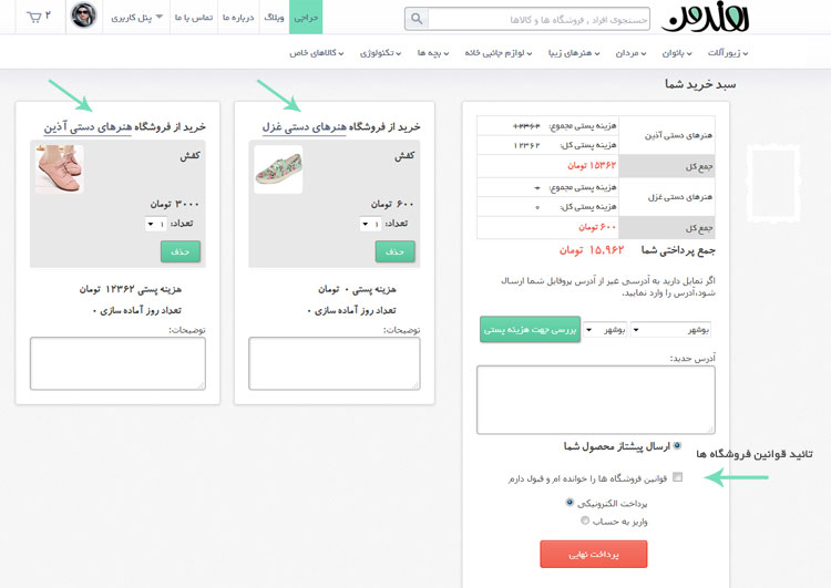 قبل از نهایی کردن خرید خود ملزم به خواندن قوانین فروشگاه یا فروشگاه هایی هستید که از آن خرید کرده اید.برای این منظور موافقت با خواندن قوانین در صفحه سبد خرید الزامی است.