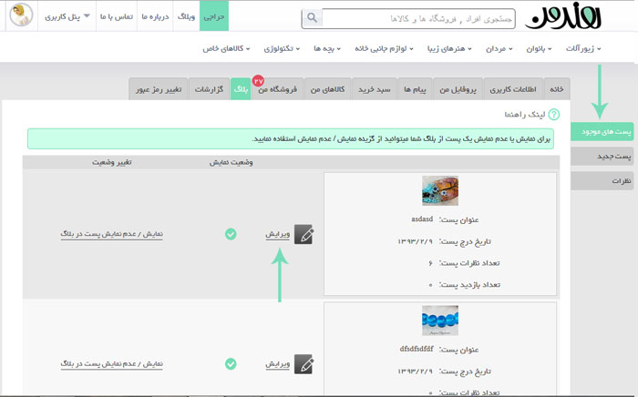 برای ویرایش پستی که از قبل ایجا کرده اید کافی است به پنل کاربری خود زبانه بلاگ و پست های موجود رفته و دکمه ویرایش پستی که می خواهید ویرایش کنید را انتخاب نموده و پست خود را ویرایش نمایید.