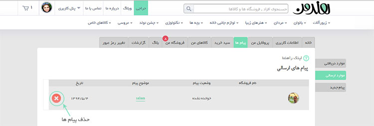 در این قسمت شما میتوانید پیام هایی که ارسال کرده اید را مشاهده نمایید و توسط دکمه حذف پیام های خود را پاک نمایید